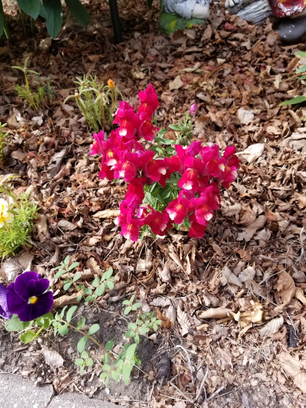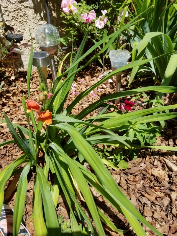 The Barbara Mitchell lily is probably not going to put out a blossom this year, but this orange snapdragon seems to like pretending to be its bloom!