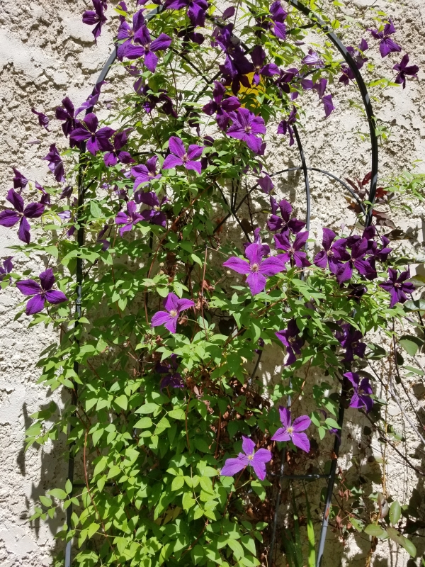 The clematis is really making up for all those years we thought it was dead. Look at it go!