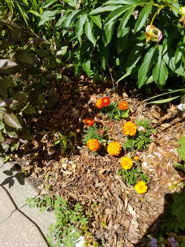 The marigolds have been real troopers this year, not fading once. (But they did get a little crinkly in the heat for a bit)