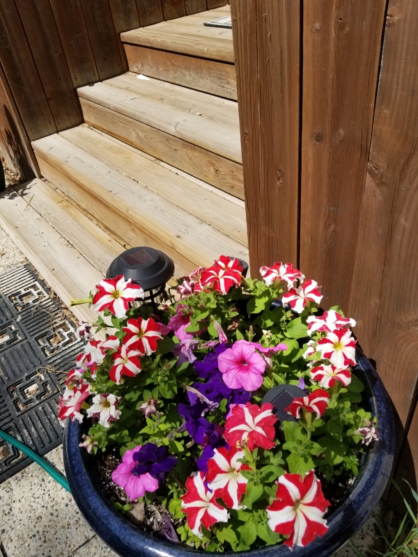The deck lavender (backyard) is doing swimmingly. Nothing really to report. Just thriving and doing its own thing.