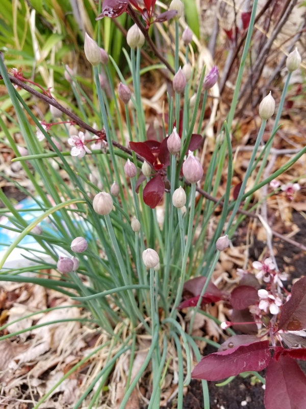 Chives are surprisingly photogenic once they bloom. Until then... well, here's the darling buds of may (chives).