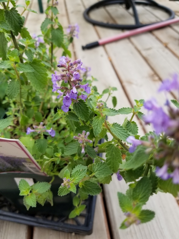 These are the plants that were getting guided tours in and out of the house before they were planted. First off, catmint, which was flourishing and continued to grow increasingly powerful after this photo. There were two kinds of lavender as well, but one tragically perished. Its roots were planted in the hopes it would renew itself.
