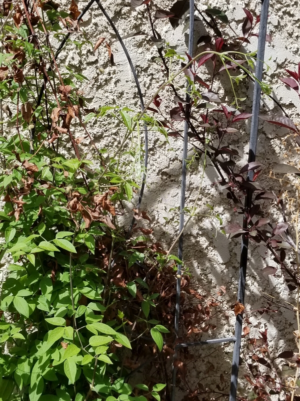 The clematis is putting out new leaves! Hopefully soon it will flower.