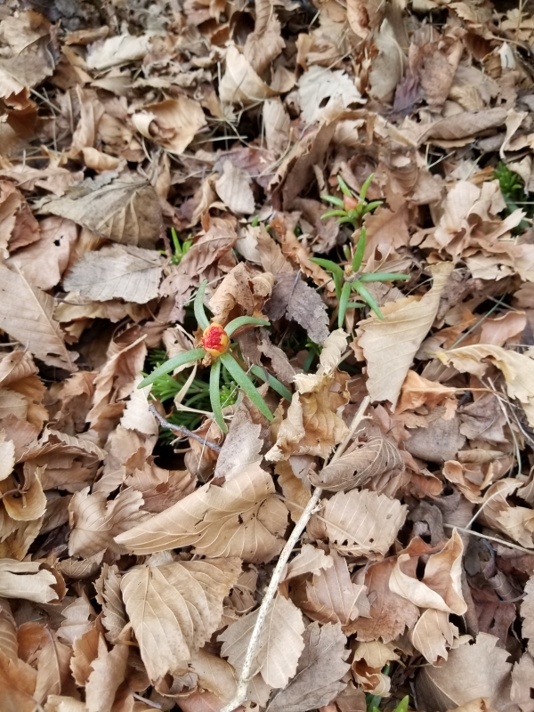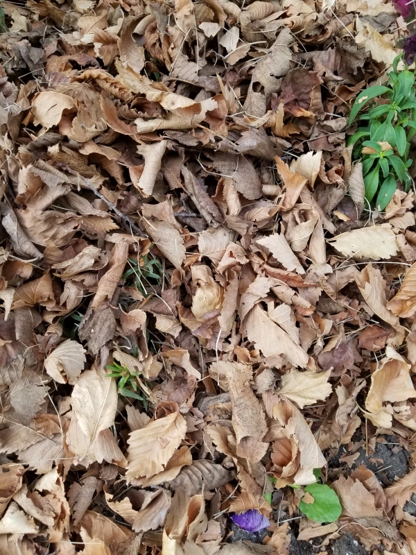 The garden has now been covered in last year's leaves, to help feed the soil. In it you can see the bits and bobs of the flowers it's meant to feed.