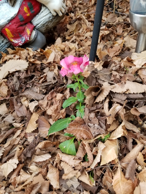 And the budding snapdragon by the see-saw gnomes has grown into a beautiful pink blossom.