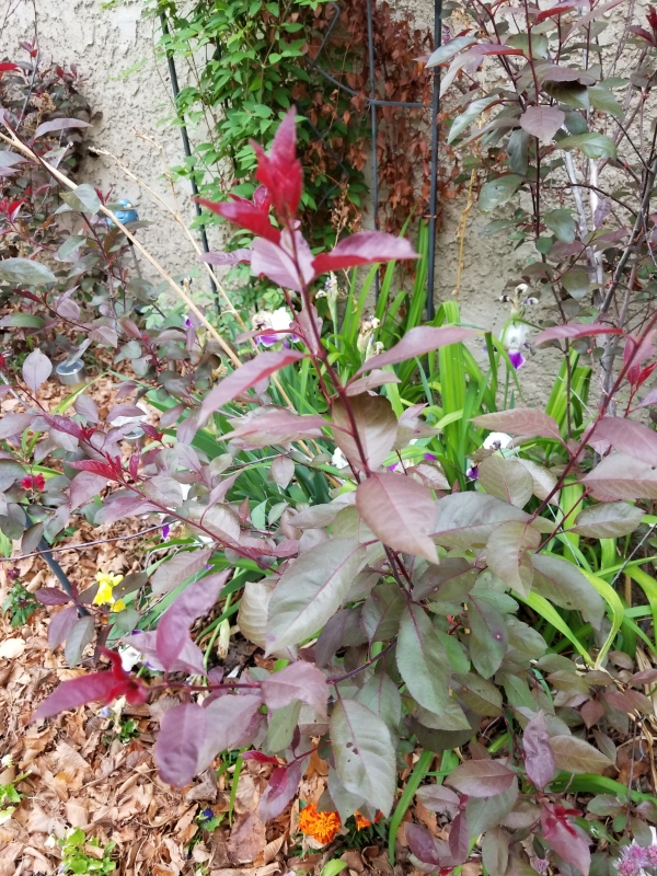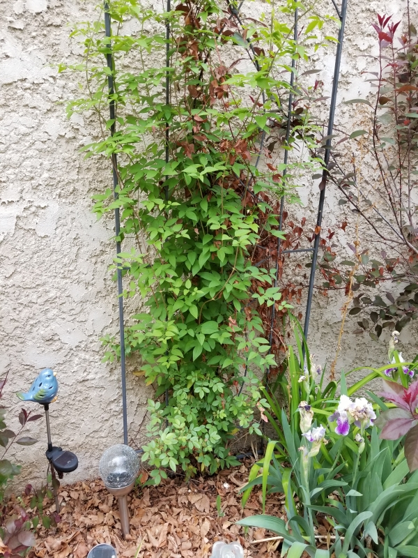 First off, a check up on the clematis and the rose bush, growing in perfect harmony.