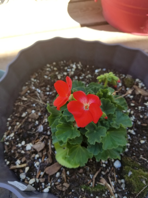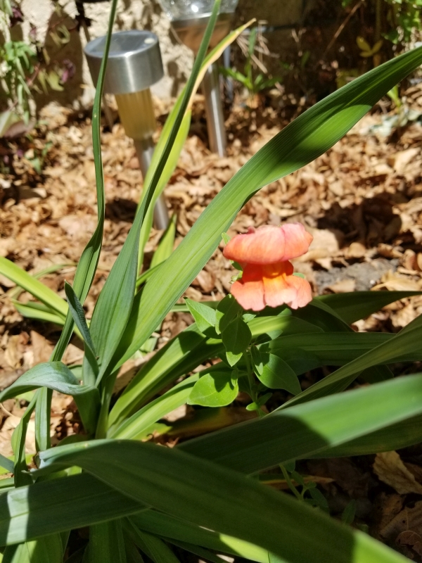 Still no flower from the Barbara Mitchell lily, but now it has an orange snapdragon friend.