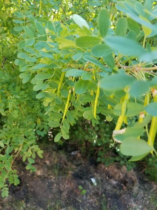 The caraganas no longer flower but have moved to the seeding part of their cycle.