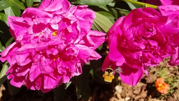 Another orange-belted bumblebee! The peonies seem to BEE a BEEG hit.
