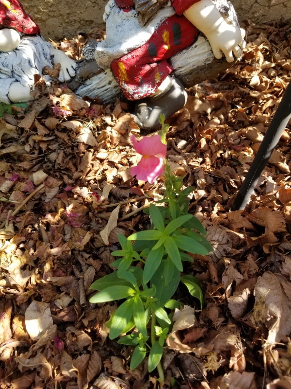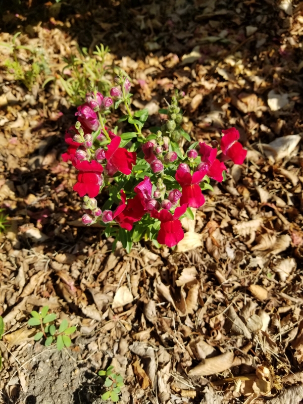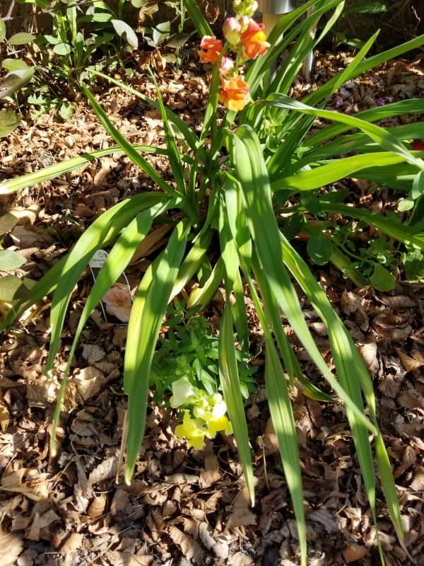 "Look at me! I'm a Barbara Mitchell lily!" says local orange snapdragon.